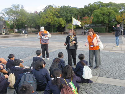 後からわかったのですが、見つめられている緊張感とこれから何が始まるのかという思いに飲み込まれて手を挙げられなかったようです。長崎に入るころにバスの中でガイドさんが同じ質問をしたら、ほとんどの子が手を挙げていましたから。