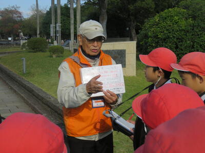 オレンジ色のベストを着た2人のボランティアガイドさんが案内をしてくださるということで、2つの活動班に分かれて歩き始めました。私は男性のガイドさんのグループについて行ったので、そちらを紹介します。