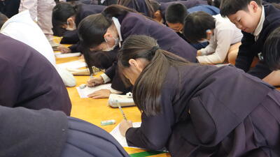 ユーモアを交えながら丁寧に説明いただいたり、ここはメモしましょうと、具体的に教えていただいたりしました。一言も聞き漏らすまいと耳をそばだて、一生懸命記録する子どもたちの姿が見られました。
