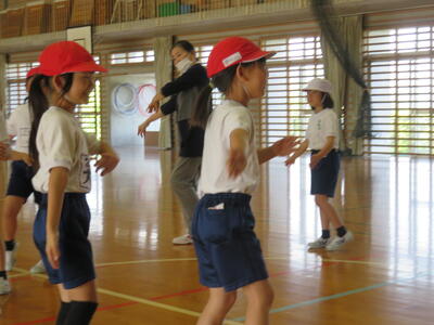 美里町地域学校協働本部の橋渡しで、地域の4名の方においでいただき、踊りの指導をしていただきました。