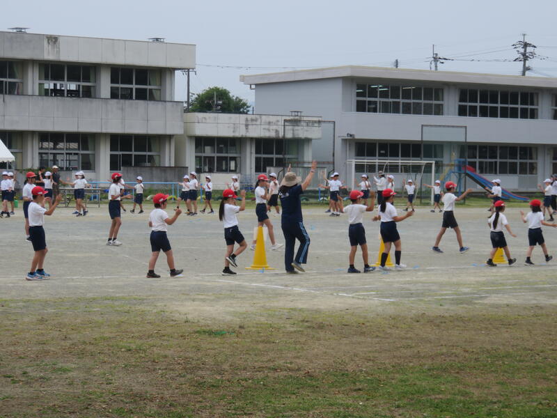 開会式に始まり、徒走、リレー、応援合戦、大玉転がし、綱引き、5・6年表現など、主だった競技を係の動きと合わせながら実際にやってみました。