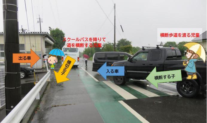 また、横断歩道を渡って登校する子や一般の車もいますので、大混雑となりました。