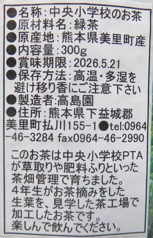 PTAの皆様の茶園管理へのお力添え。そして、自分たちで摘んだお茶の葉。製茶工場の高島園さんが精いっぱい込めた愛情。
