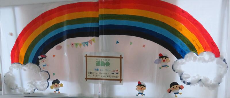 図書室でも、司書の先生と情報委員会の子どもたちが運動会に向けた楽しい取組をしているとのことで、見学しに行きました。