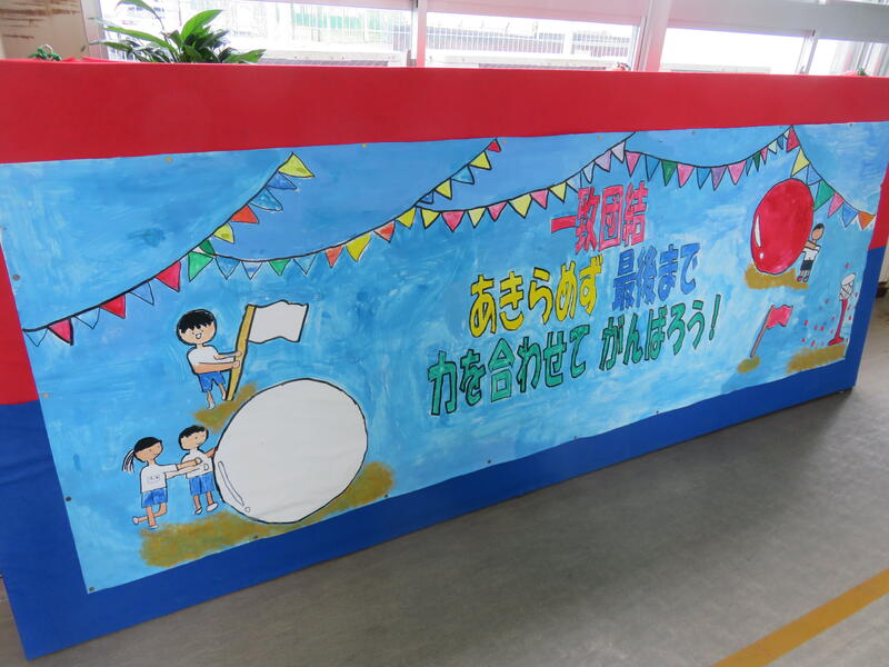 本年度の運動会テーマは、「一致団結~あきらめず 最後まで 力を合わせて がんばろう~」です。