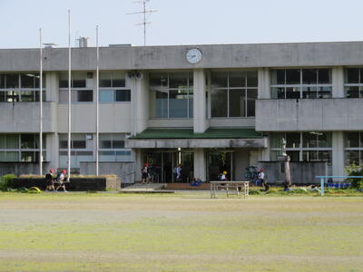 児童昇降口の前に、「二宮金次郎さんの像」があります。