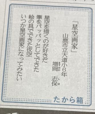 熊日新聞「たから箱」に児童の作品が紹介されています!⑥