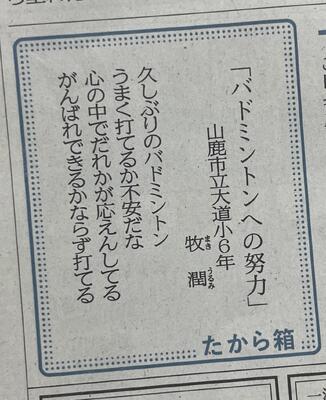 熊日新聞「たから箱」に児童の作品が紹介されています!⑦