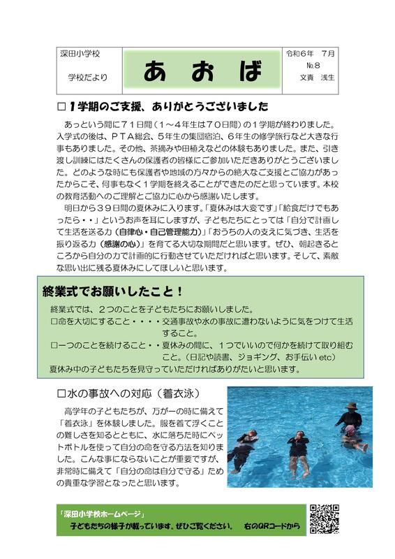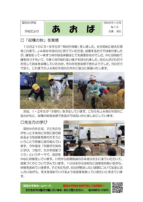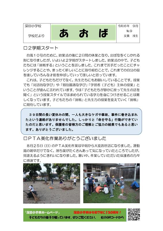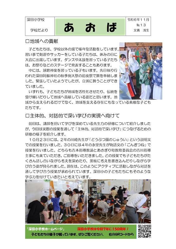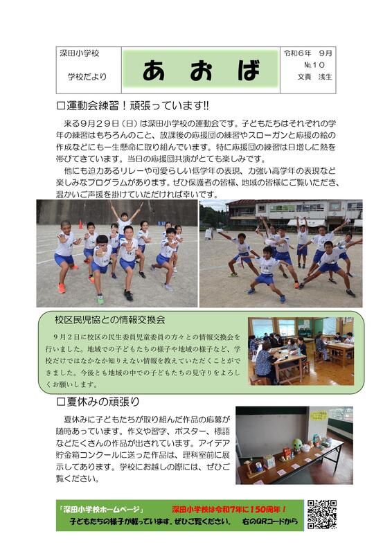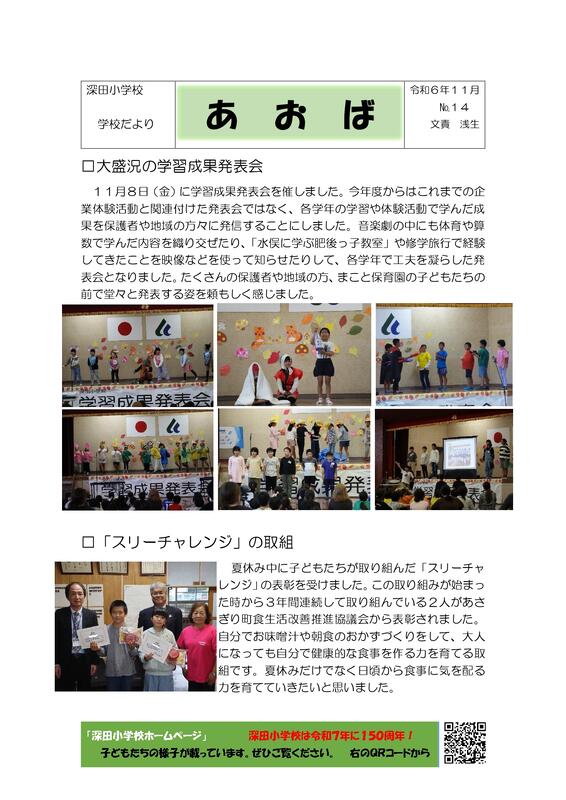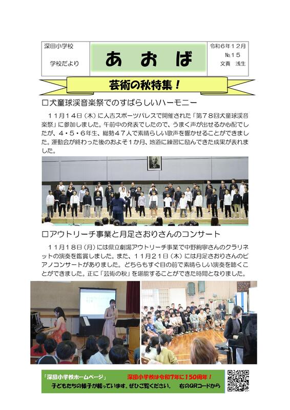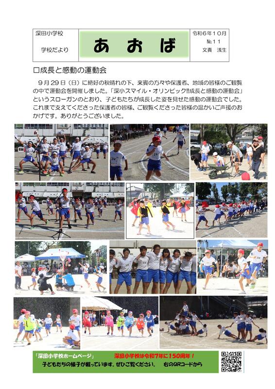 トップページログインはこちら学校の概要学校だより「あおば」学校生活行事予定お知らせ深田小学校創立150周年記念事業