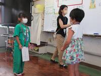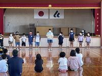 今月の深田っ子集会は7月生まれの人のお祝いと学習委員会からの発表がありました。