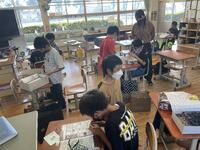 早く筆を使って書きたいとワクワクの子どもたちでしたが、まずは、準備や後片付けの仕方や筆の持ち方、書くときの姿勢の確認などが中心となりました。終わりの方で2枚ほど、筆を使って書くだけでしたが、楽しそうな子どもたちでした。