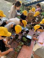 深田っ子タイムの時間、教室前の花壇に花の苗を植えました。どんな花が咲くのだろうとわくわくした様子。みんなで力を合わせて植えました。ミニトマトなどほかの野菜のお世話と一緒に花のお世話も頑張ります。