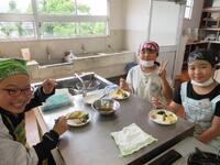 5年生の学習では、まず、「ゆでる」ことを学習します。1回目の調理実習では、青菜(ほうれん草)とじゃがいものゆで方の違いに気をつけて班で協力しながら頑張りました。