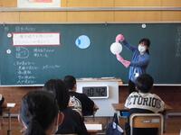 前半は、環境センターの先生による「地球環境について」の講話でした。生きていくために欠かせない水について、写真やアニメーションなどをもとに詳しくお話ししていただきました。