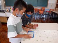 これまで練習用の布でミシン縫いの練習を頑張っていましたが、いよいよエプロン作りに入りました。布を裁ったり、しつけをしたりと初めての作業にも意欲的に取り組んでいます。2学期の調理実習では、自分で作ったエプロンをつけて頑張りたいと思います。