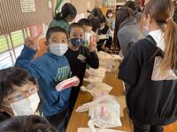 まだ試作の段階ですが、学習成果発表会の日に販売ができるよう、今後もアイデアを出し合いながら製作を進めていきます。起業体験の為に、お家からたくさんの牛乳パックを持たせていただき、ありがとうございました。