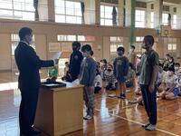 今月ははじめに持久走大会や人吉球磨美術展の表彰がありました。