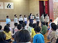 今月の深田っ子集会は10月生まれのお祝いと縦割り班対抗で放送委員会によるイントロクイズをしました。