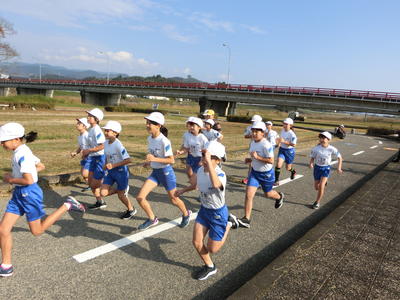 11月26日(木)持久走大会に向けて、各学年で試走を行っています。今年は、河川敷のコースを周回する形で行います。みんな頑張っています。