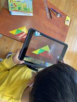 算数の学習で影絵にぴったり合うように色板を並べる活動でした。