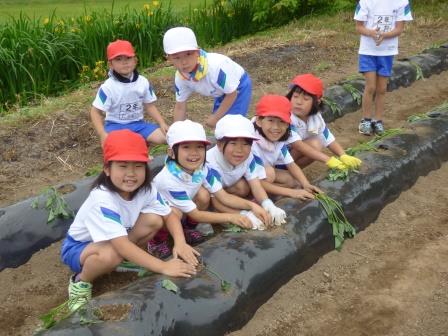 2・3校時生活科の授業でいもの苗植えをしました(^^)/