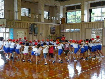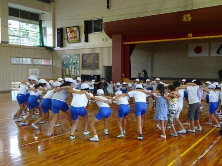 今日の運動会全体練習では、運動会プログラム最後の「だんだんな音頭」の練習をしました。