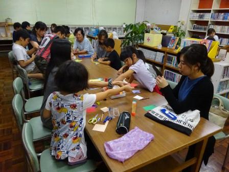 学校地域作り協議会 おはなし隊の方々による読み聞かせや、親子でしおりを作りました。