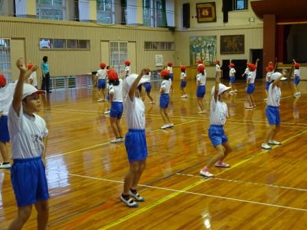 今日は、雨で運動場が使えず体育館での練習となりました。
