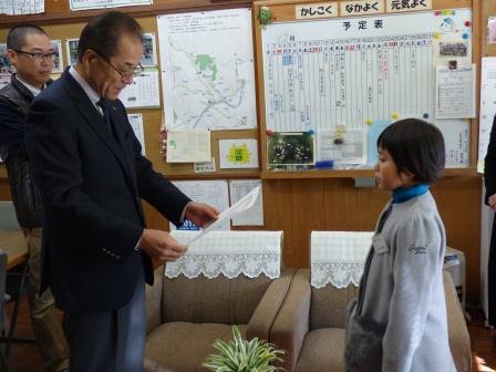 校長室で、表彰式が行われました。