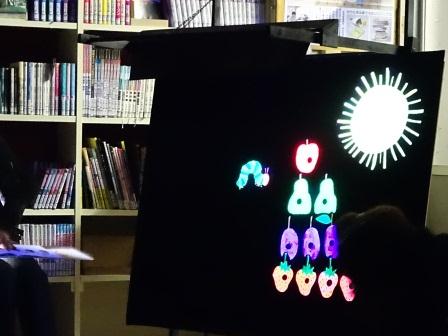 おはなし隊の方々による読み聞かせや、ブラックパネルシアター「はらぺこあおむし」がありました。