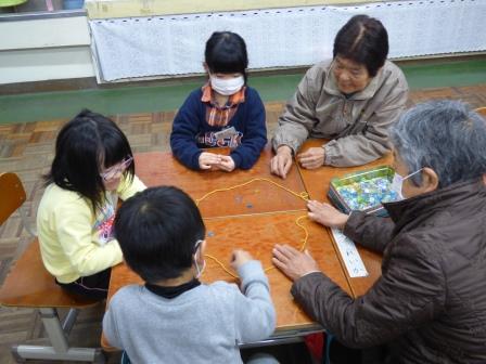 老人会のみなさんお手製のお手玉や竹とんぼ、けん玉、おはじき等を使用し昔遊びを教えていただきました!