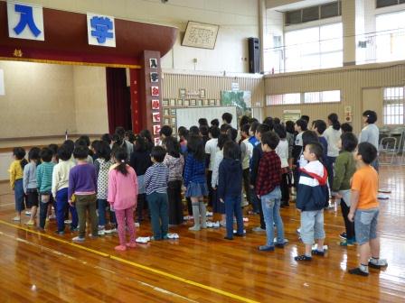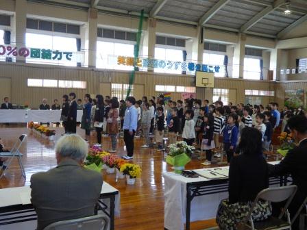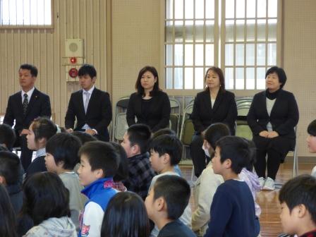 転入して来られた5名の先生をお迎えし、就任式・第1学期始業式がありました。