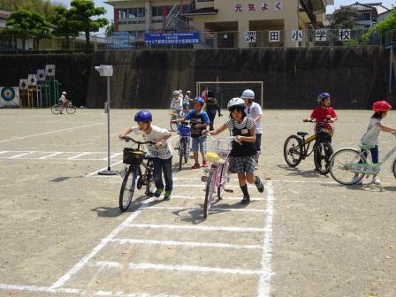 3年生にとっては交通教室で自転車に乗るのは初めてということもあり、少し緊張した様子でした。