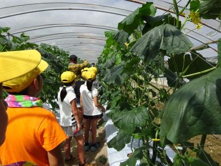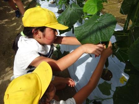 校区の荒川さんご指導のもと、きゅうりの収穫を行いました!