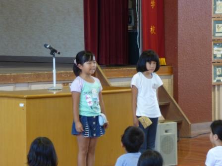 1学期の反省は2年生の代表児童2名が発表してくれました。