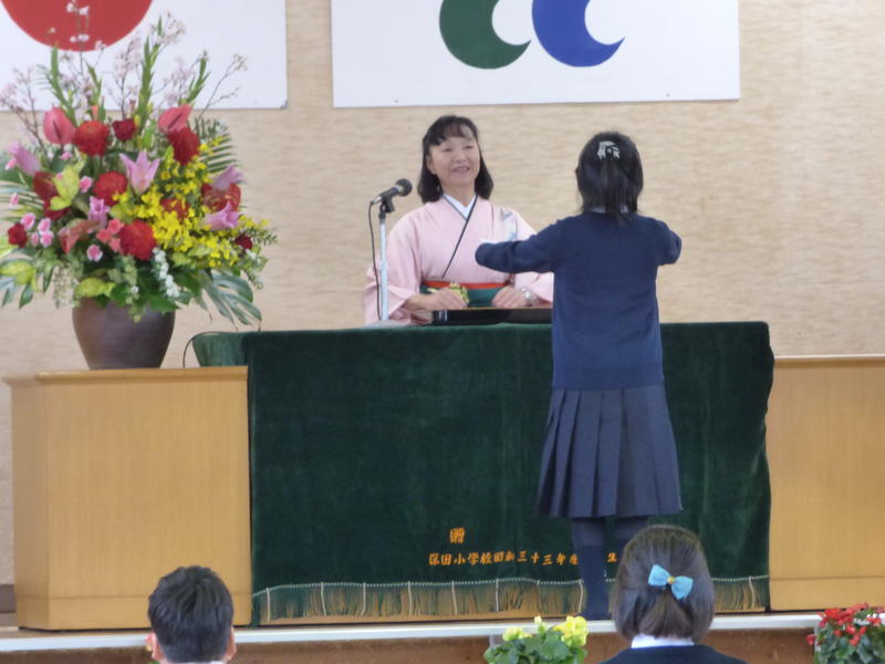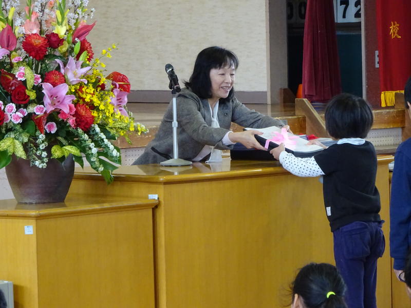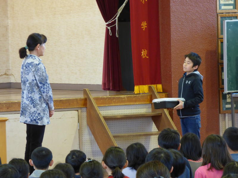 今日は、坂本さんのご主人にお越しいただき、6年生の代表児童よりお礼の言葉と感謝状を贈呈しました。
