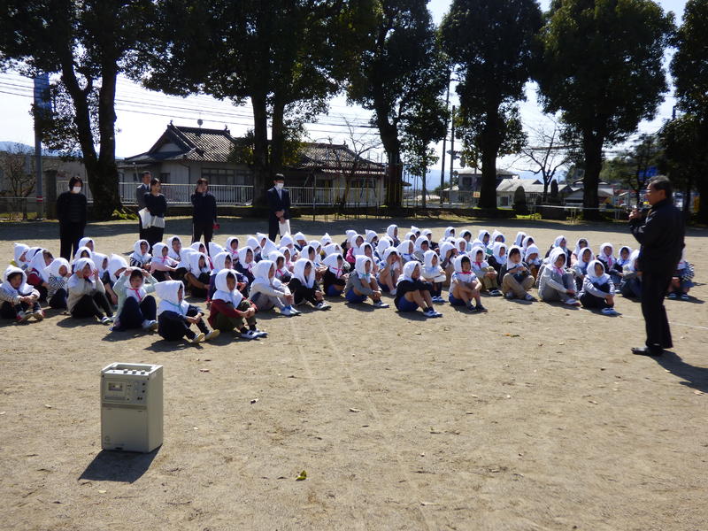 各教室から運動場までの避難時間は1分45秒でした。