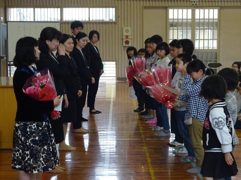 各学年の代表児童がお別れの言葉と花束を贈呈しました。