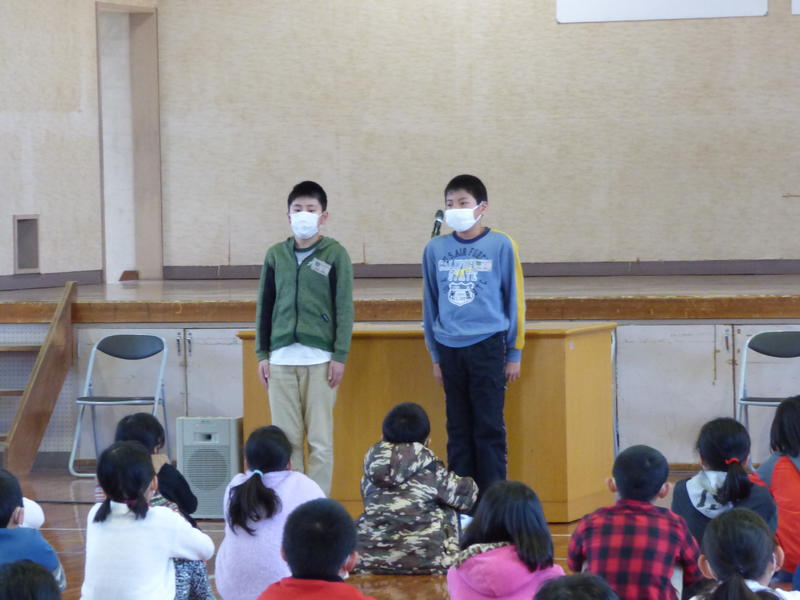 歓迎の言葉、新学期の目標は、6年生の代表児童が発表してくれました。