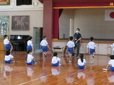 朝のランランタイムの様子です。梅雨の晴れ間の朝、みんなで朝の運動を楽しみました。