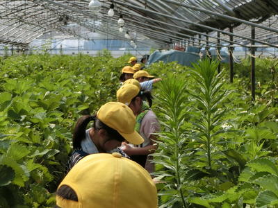 6月8日(月)イチゴ採集体験を行いました。ご近所のイチゴ農家様のご厚意でビニールハウスに