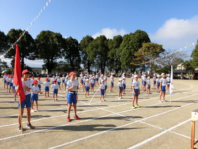 9月27日(日)秋晴れの下、令和2年度運動会を開催しました。8時40分入場の様子です。白組です。