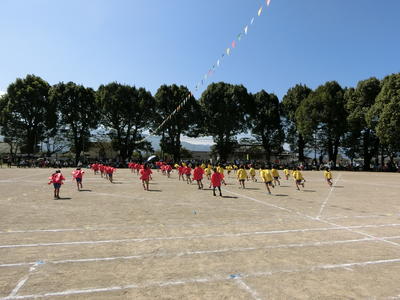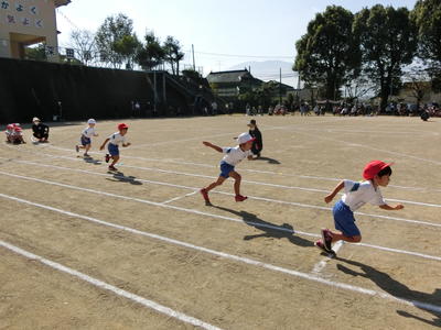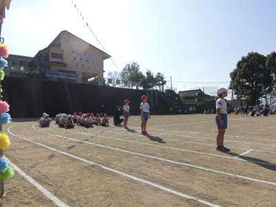 運動会のプログラムは徒走から始まりました。3年生4年生の徒走です。