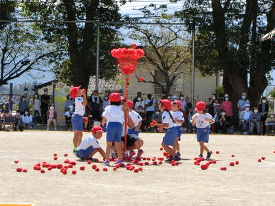 白組の演技です。今年は、保護者席に向かって演技をしました。