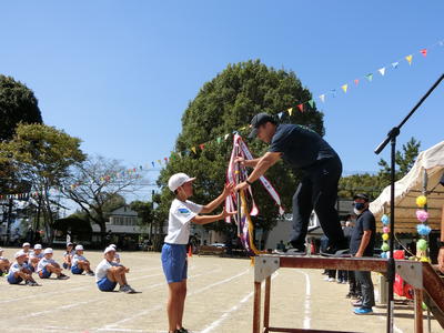 閉会式の様子です。成績発表、今年の優勝は白組でした。