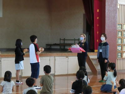 ALTのイバ先生は、他の学校で教えることになりました。お別れ会を開きました。