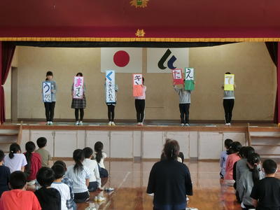 11月24日(火)保健委員会の発表です。冬をむかえて、心配されるインフルエンザやコロナウイルスの流行を防ぐために、気をつけていくことを確かめました。合い言葉は「うまくきたえて」です。