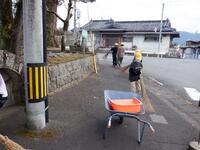 お花を届けた後、松本先生が一人で道路を掃除されているのを見かけた子どもたち…「僕たちもやりたいです!」と嬉しい一言が。反省会の後、みんなで道路の清掃をしました。みんなで協力して、落ち葉だらけだった道路がとてもきれいになりました。