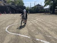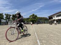 中学年・高学年は運動場で自転車の乗り方を学習しました。