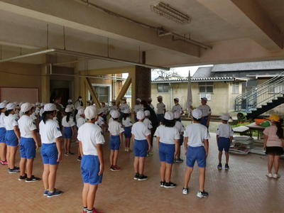 9月10日(木)今日の全体練習は、「だんだんな音頭」と閉会式でした。一通りやってみました。集中して短時間で練習を行っています。みんな真剣に頑張っています。